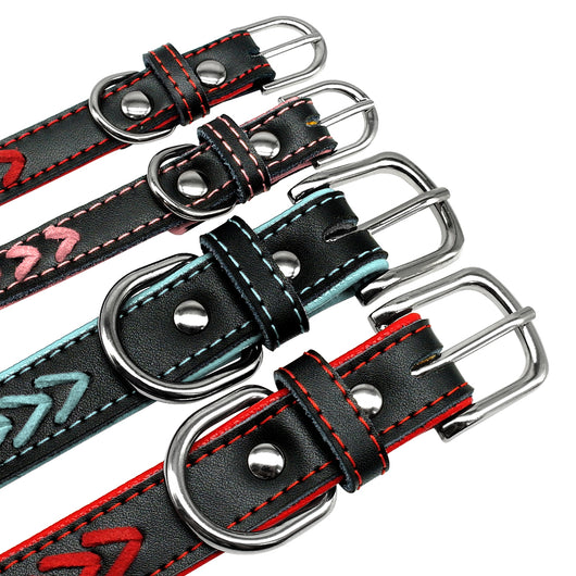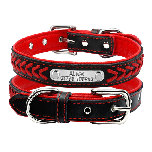 Personalized Embroidered Leather Dog Collar With Custom Name Tags!